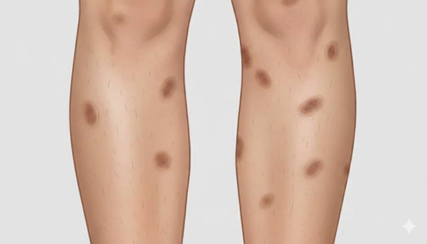 Brown or reddish oval patches on the shins, often mistaken for age spots, can be an early sign of diabetes. They are painless but should not be ignored.