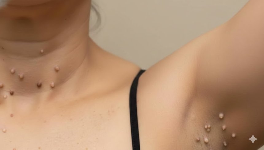 While harmless on their own, numerous skin tags on the neck, armpits, or eyelids may be associated with Type-2 diabetes risk.