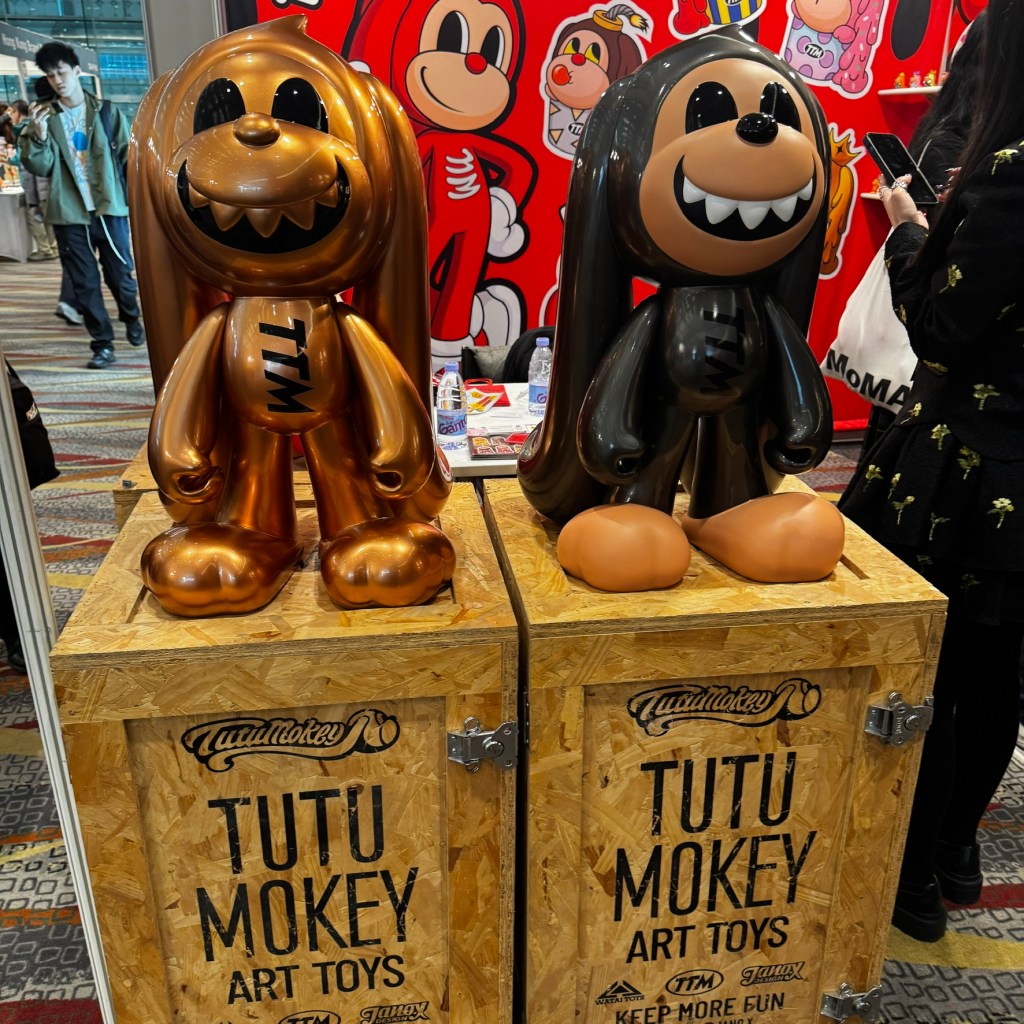 Tutu Mokey: There’s something so appealing about this art character that loudly proclaims, “I am not a rabbit.” From large scale sculptures (similar to the white-hot Be@rbrick from Japan) to co-branding deals with such established brands as B. Duck, this was a huge draw for attendees.