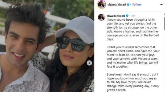 Sharing multiple pictures, the 45‑year‑old actress wrote: “We are a team, and no matter what life brings, we will face it together. My love for you will never change. With every passing day, it only grows deeper. I am so proud of you, my little warrior. I love you forever and always, till my last breath.”