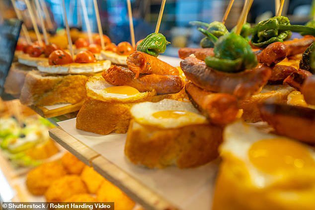 Pintxos from the Basque Country, including gildas (olives, anchovies, peppers).